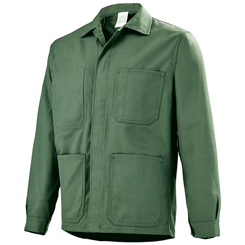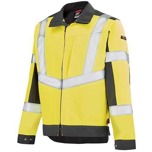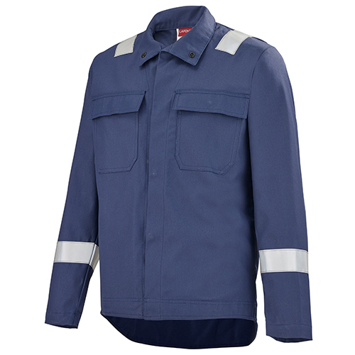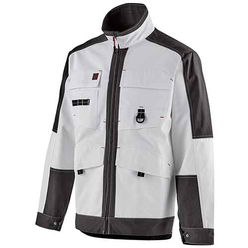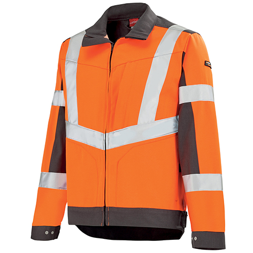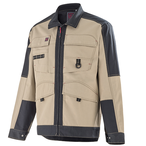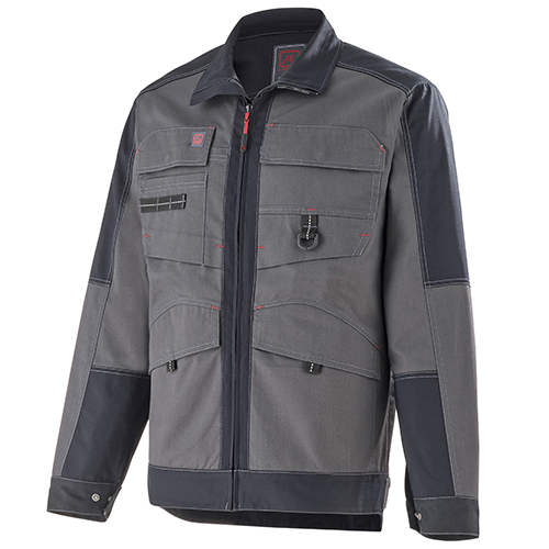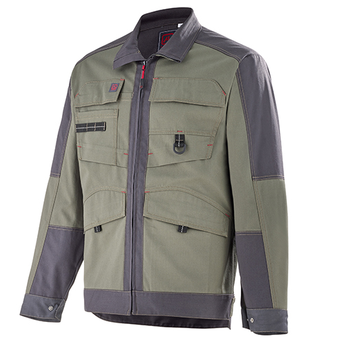 Col montant avec mentonnière • Renfort intérieur épaules et empiècement dos • Fermeture centrale zippée cachée bord-à-bord • Poches poitrine à rabat fermé par grippers cachés et avec soufflet bas, dont une avec surpoche et sangle porte-outils avec détail rétro réfléchissant et l’autre avec tresse porte-boucle • Poches basses passepoilées à rabat fermé par grippers cachés • Poche intérieure • Renforts intérieurs bas de manches • Pinces coudes préformés • Soufflets d’aisance dans le dos • Pattes de réglage au niveau de la ceinture • Bas dos dépassant.
